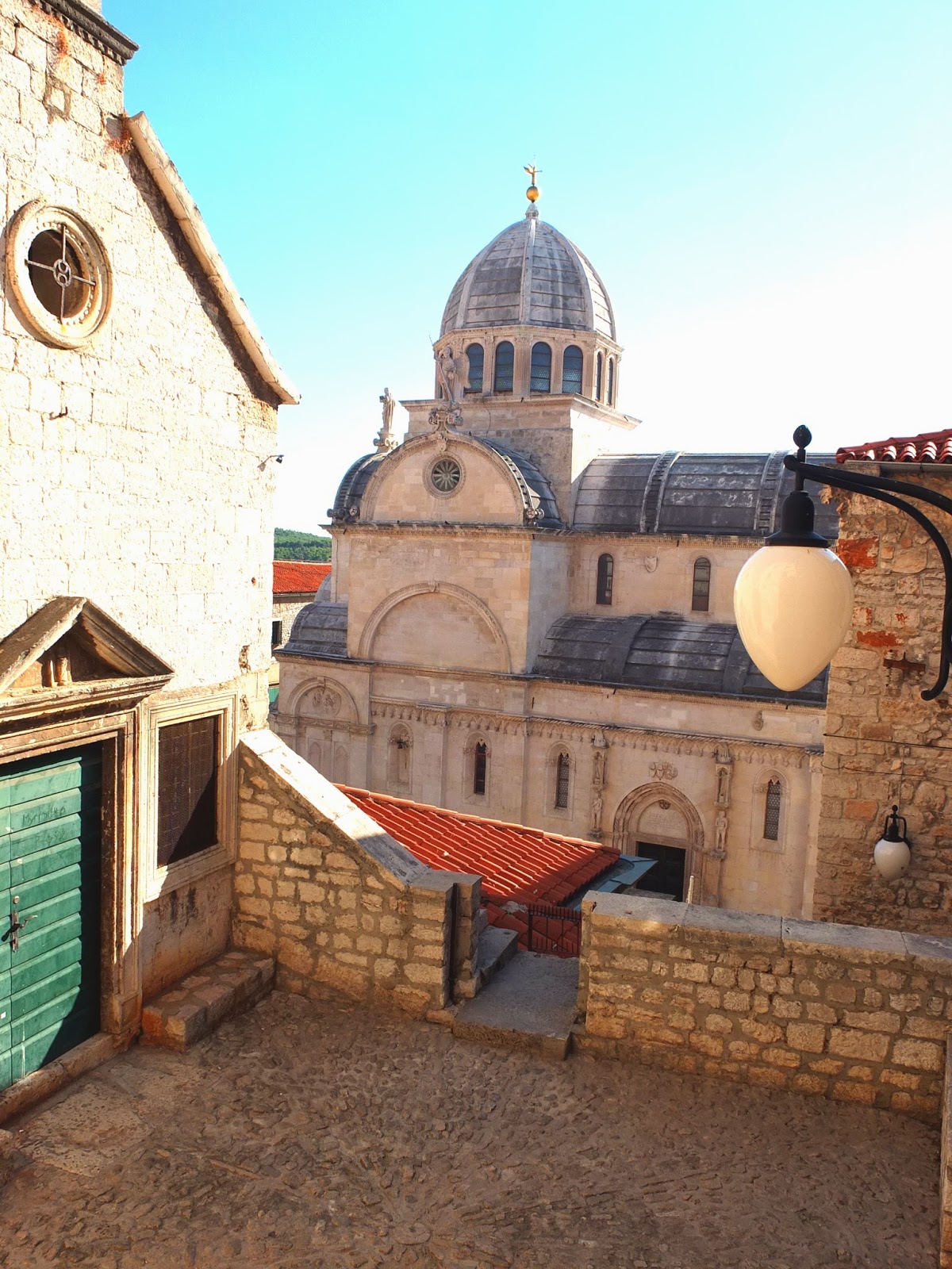 到 Dubrovnik 的路上,我們經過了一個叫 Sibenik 的小城,Sibenik 是個小港都,他有可愛的教堂在臨海的舊城區,小巧可愛,我們到的時候是下午三點半,太陽還很毒辣,城裡的遊客稀稀疏疏,要不就是毫無生氣的老人團要不就是心不在此的高中生畢業旅行團,整個舊城區有種施展不開的無奈。我們在裡頭吃到了異國的第一餐,雖然也不便宜,但口味不錯,友人還立刻點了旅遊書介紹的當地食物,像是煎過的絞肉條,挺好吃的。