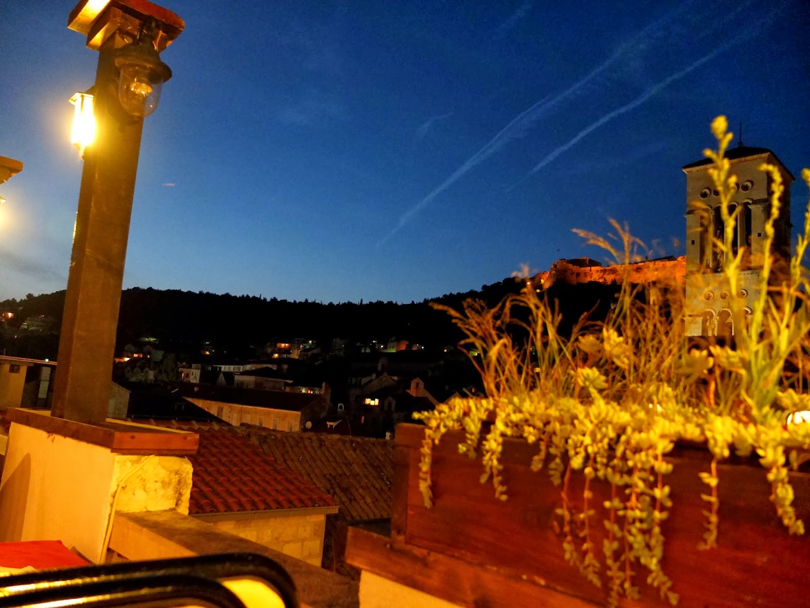 享受Hvar島的夜晚 遠望教堂的鐘塔
