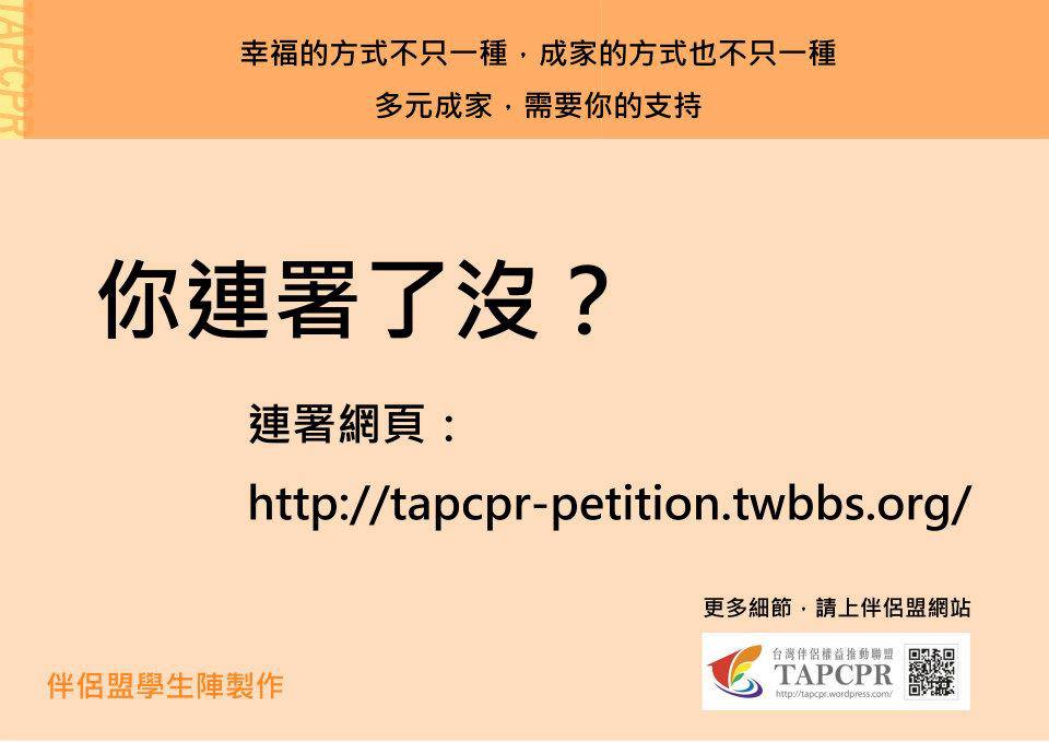 這一次,我們離同志婚姻與伴侶權更近了一些,絕對不能再被教會組織恐嚇,爭取婚姻與伴侶權,希望大家共同支持。