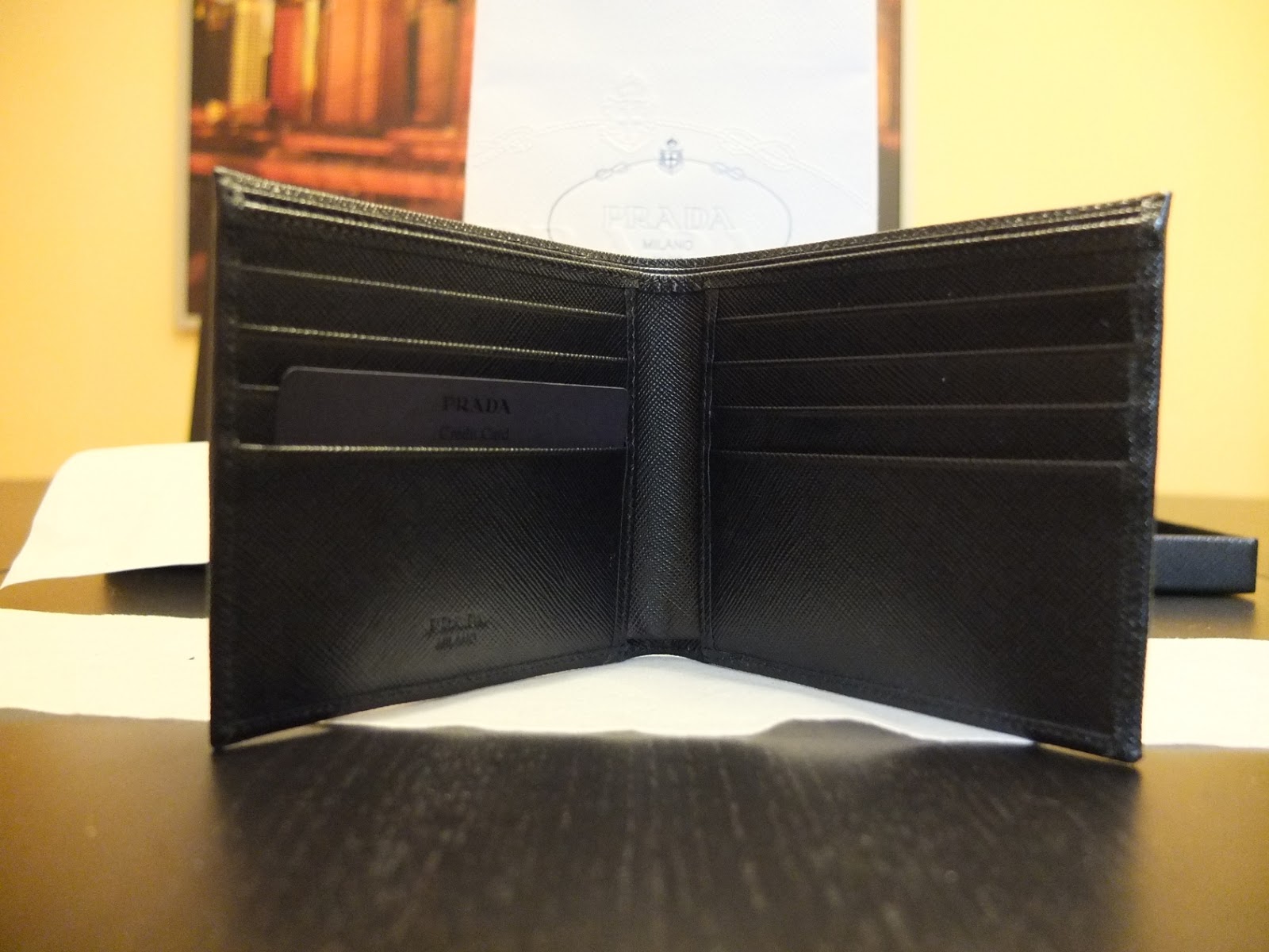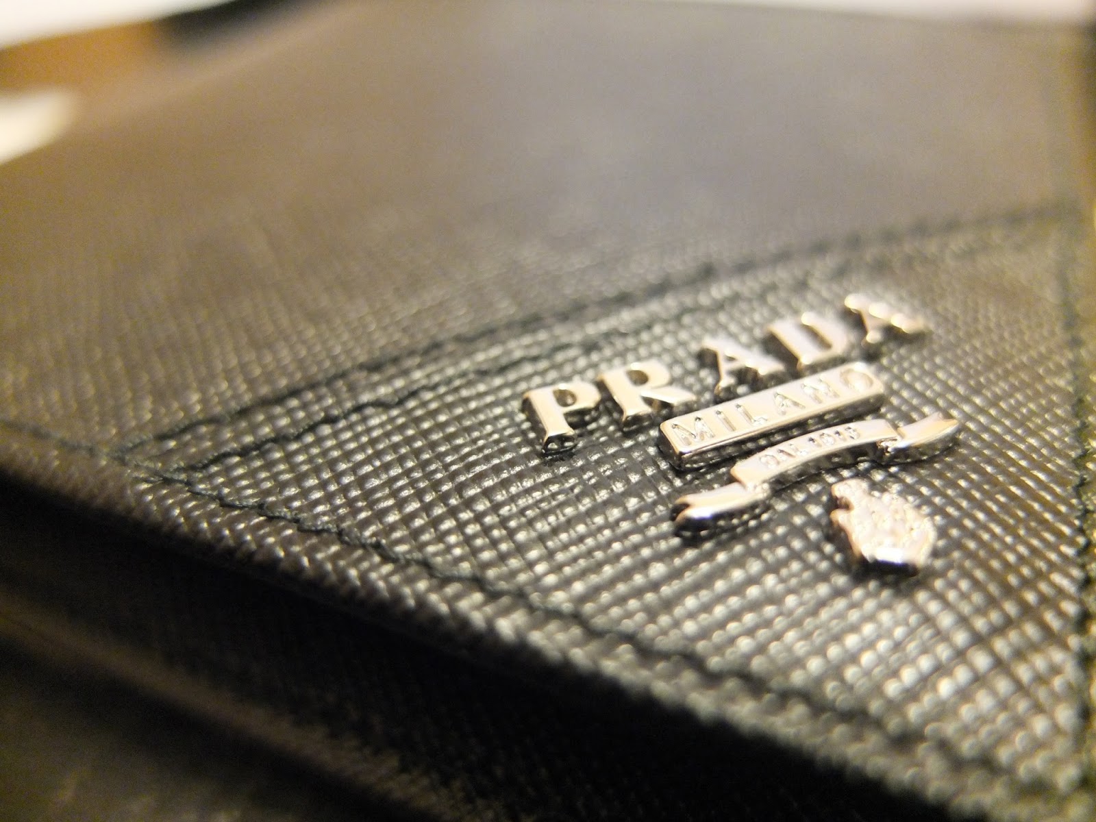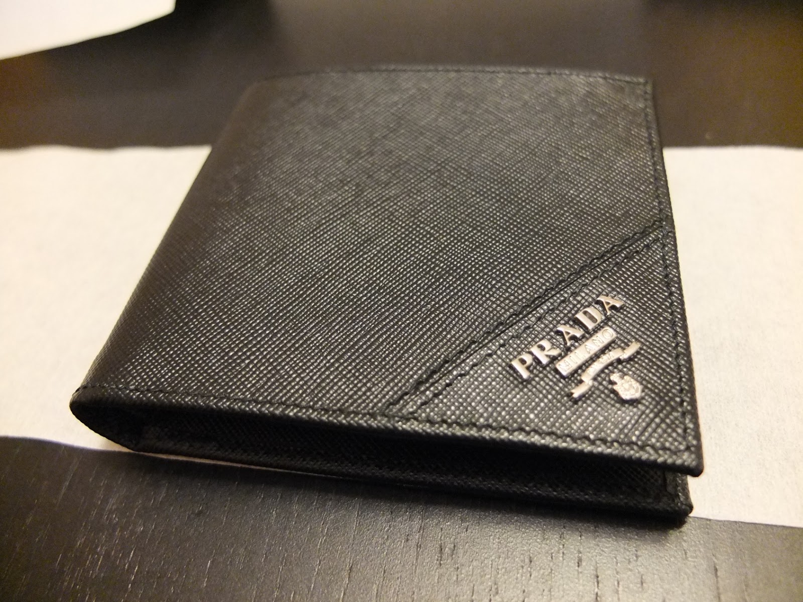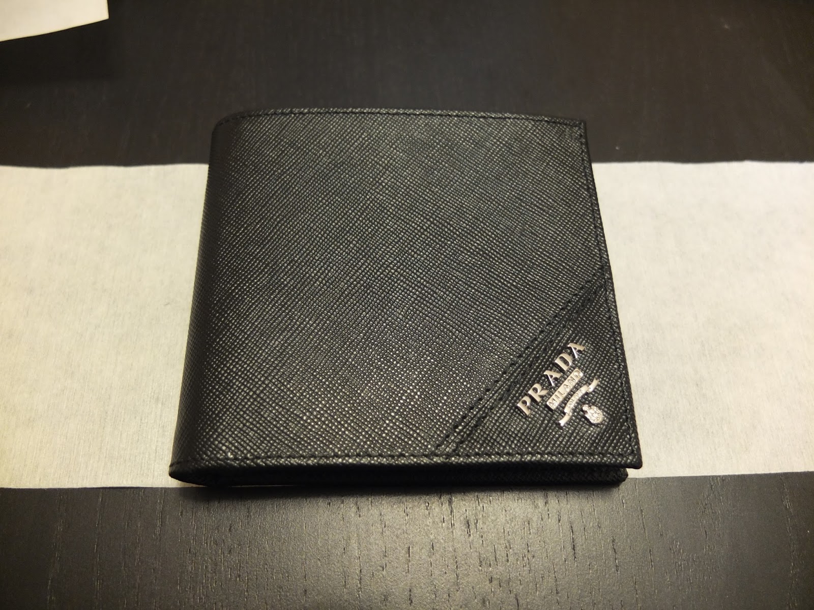 走到地下室的男裝,看了玻璃櫃裡的皮夾,果然三角LOGO還是只有長夾,