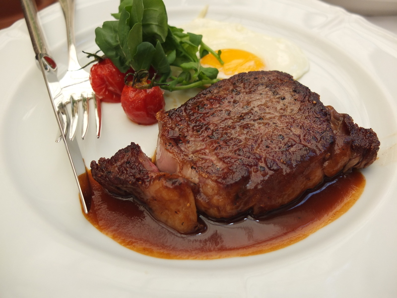 熟度五分、外頭煎烤得焦焦的乾式熟成肋眼,