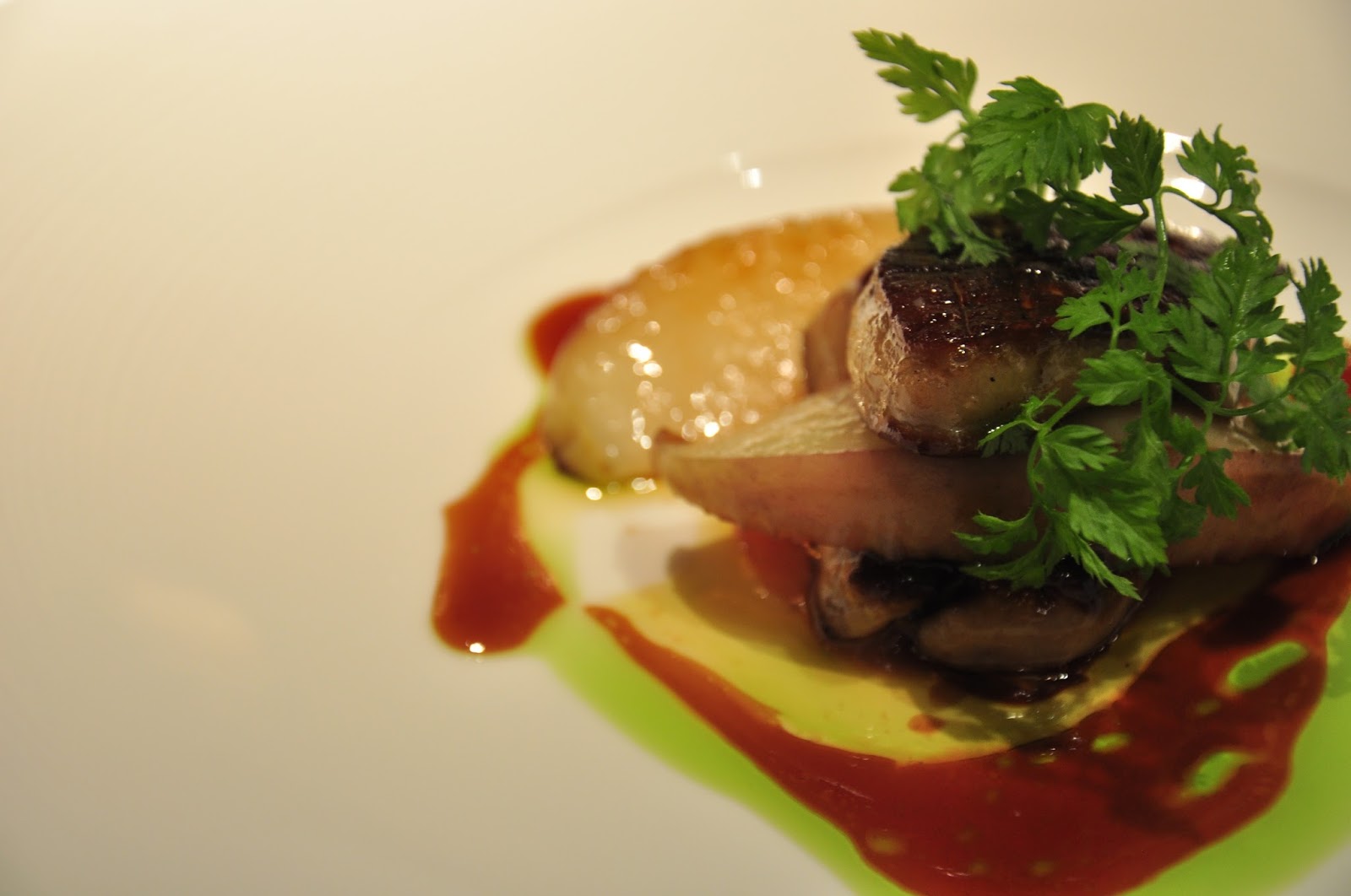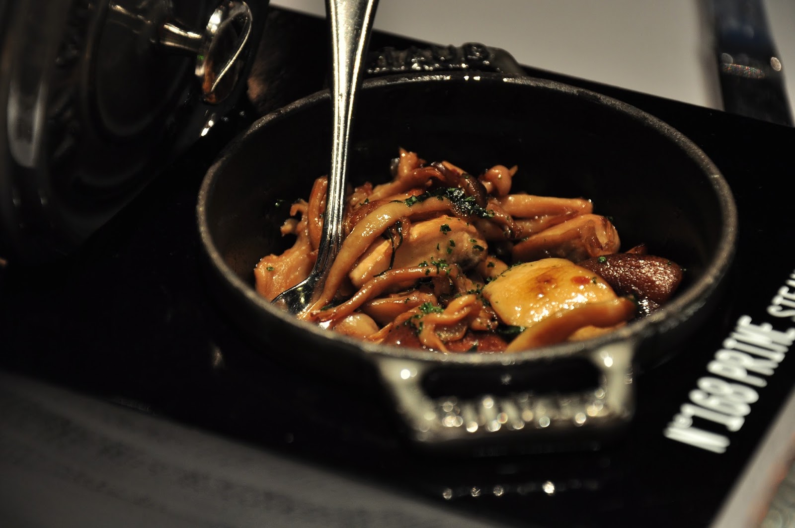 會有兩道附菜:煎烤大蘆筍 & 白酒香炒野菇
