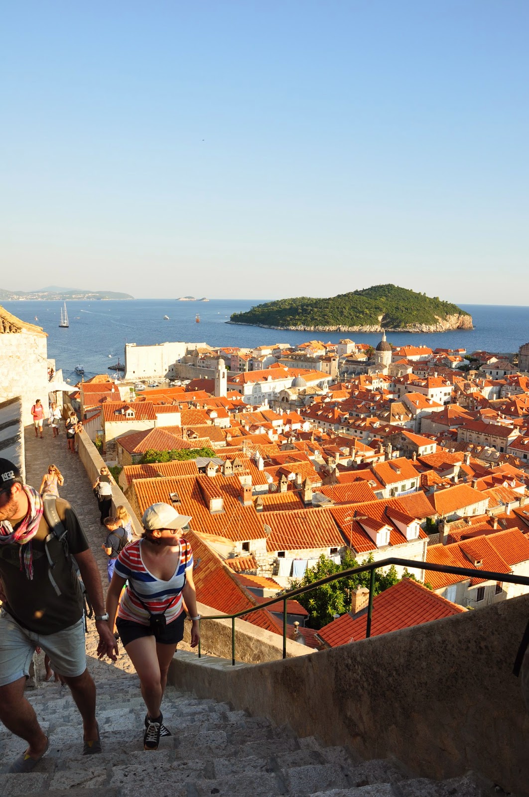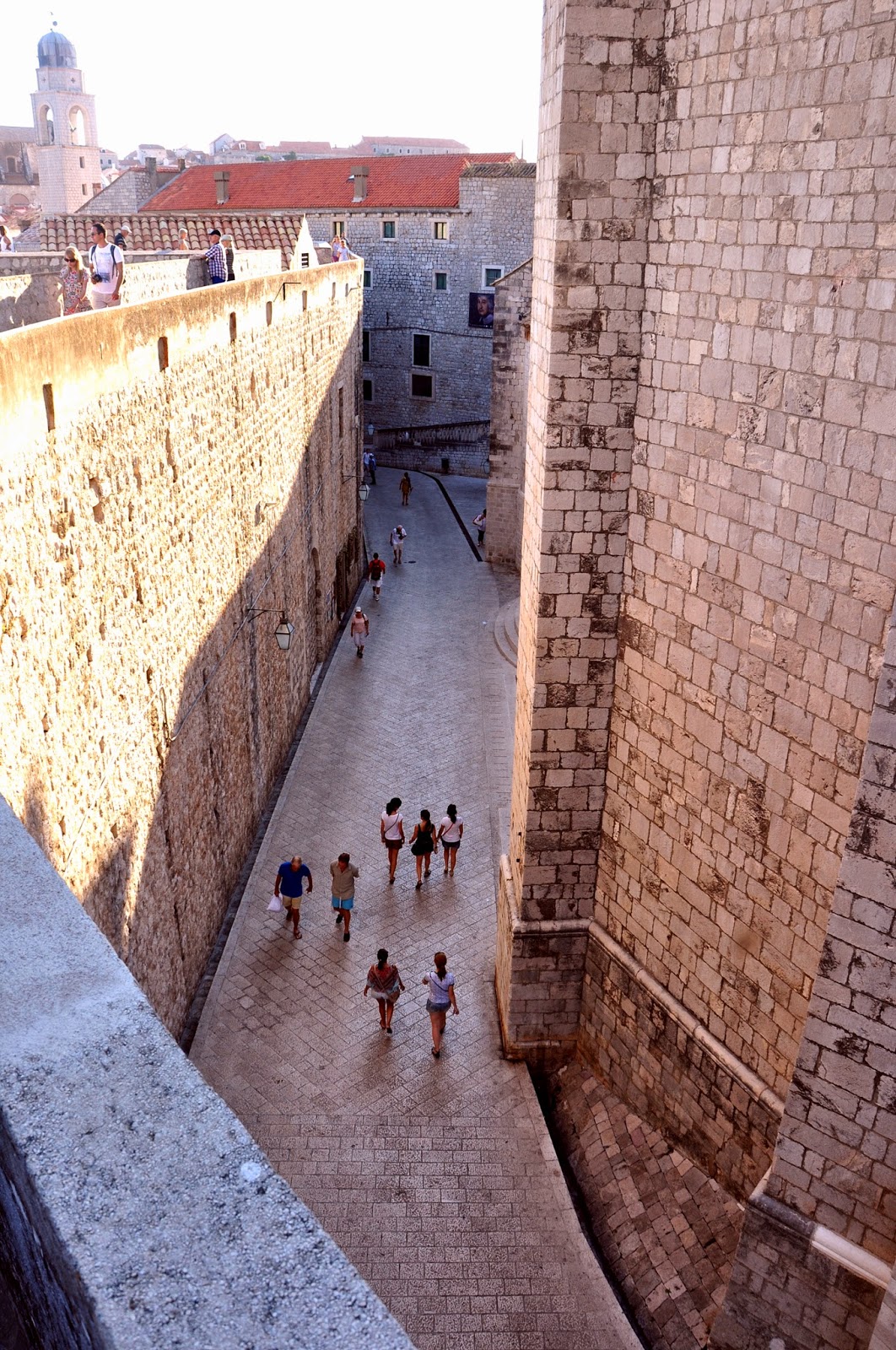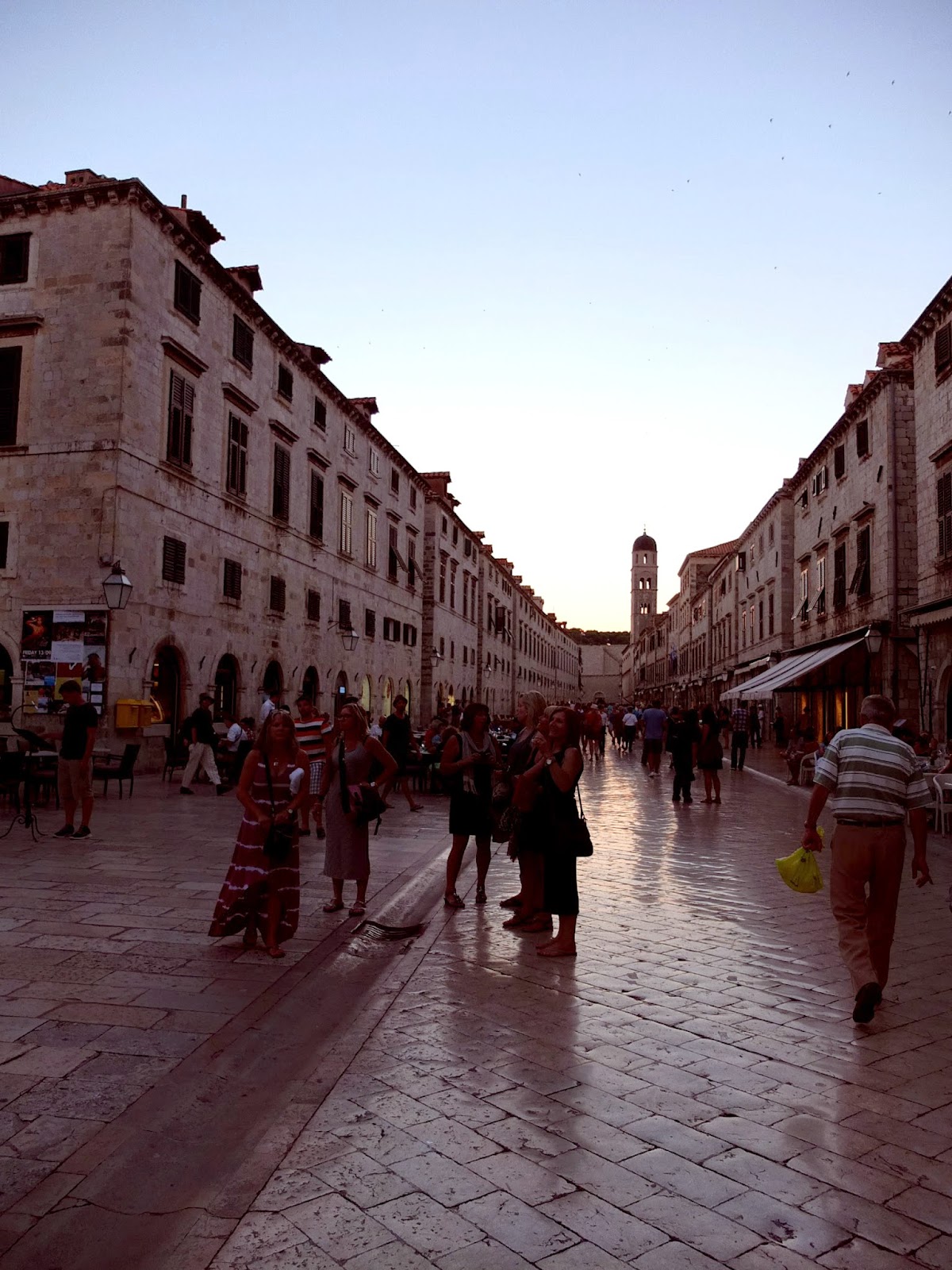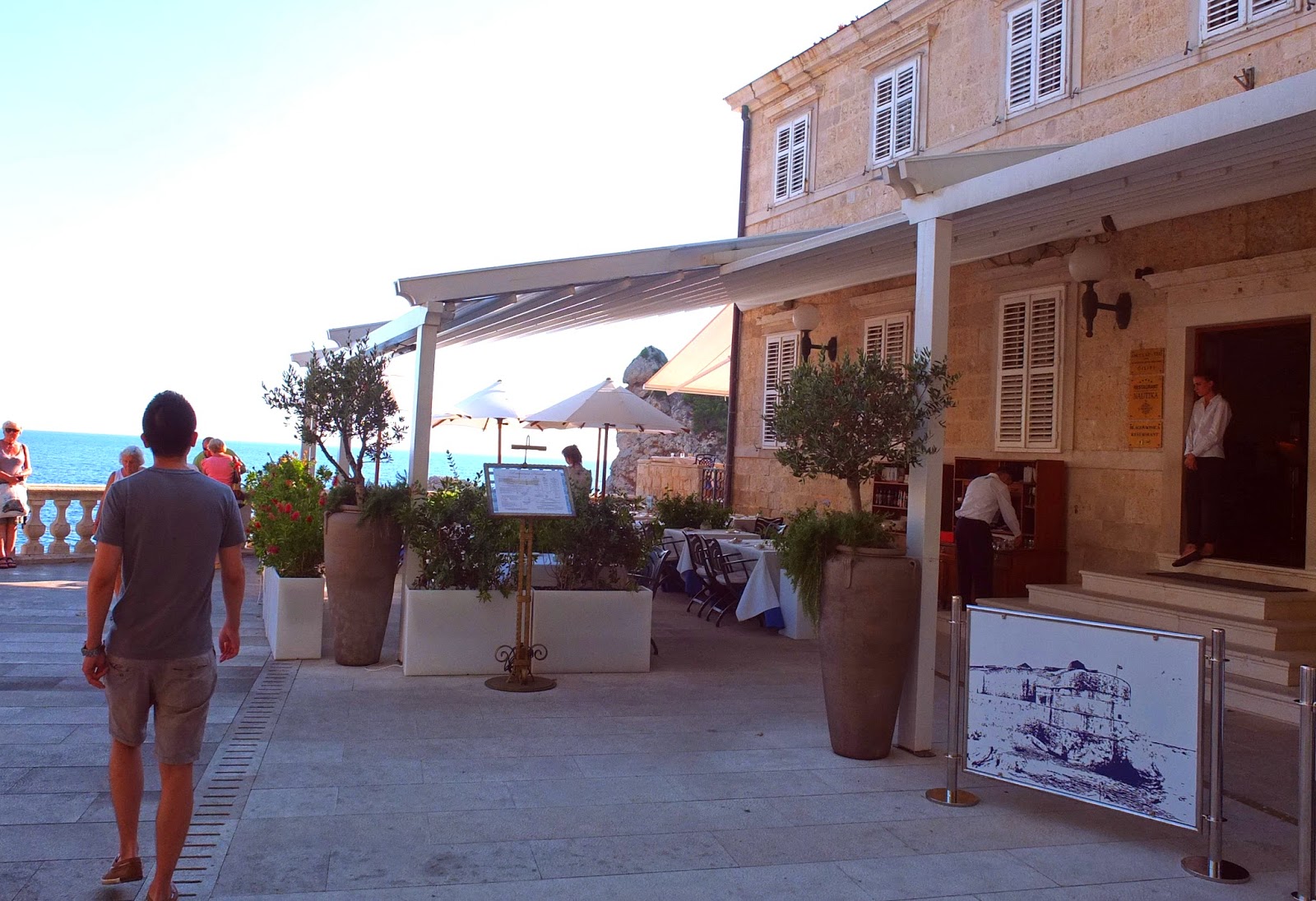 Dubrovnik 是個很美的小城,我一直覺得這個古城像是進擊的巨人裡的城市,有著完整的圍牆還有高高的鐘塔教堂,寬廣的市政廳廣場,也像是我在臉書城市建造的小遊戲裡,不經意就實踐起來的那種對中世紀城鎮的想像,甚至還更加完整;從入口處的護城河和吊門,然後還有玄關入口石磚坡道,讓人覺得好逼真啊!雖然她本來就是真的,但是因為一切都保存得太完整了,所以反而覺得好假,另一個原因也是因為這裡實在是太商業了,街道上所有的店舖都是餐廳和紀念品店,就像是迪士尼計畫好的一個主題遊樂區那樣,感覺不到一絲居民的氣息。總覺得走進每一個居民的家裡都可以找到他們在餐廳穿的制服... 但畢竟就是來度假的,也沒什麼好說的。只是這裡物價普遍高,大概因為來的都是有錢的老人,沒什麼其他休閒可以做,逛逛街之外就是吃大餐,我們也只好打臉充胖子,坐在街道上一起裝優雅了。