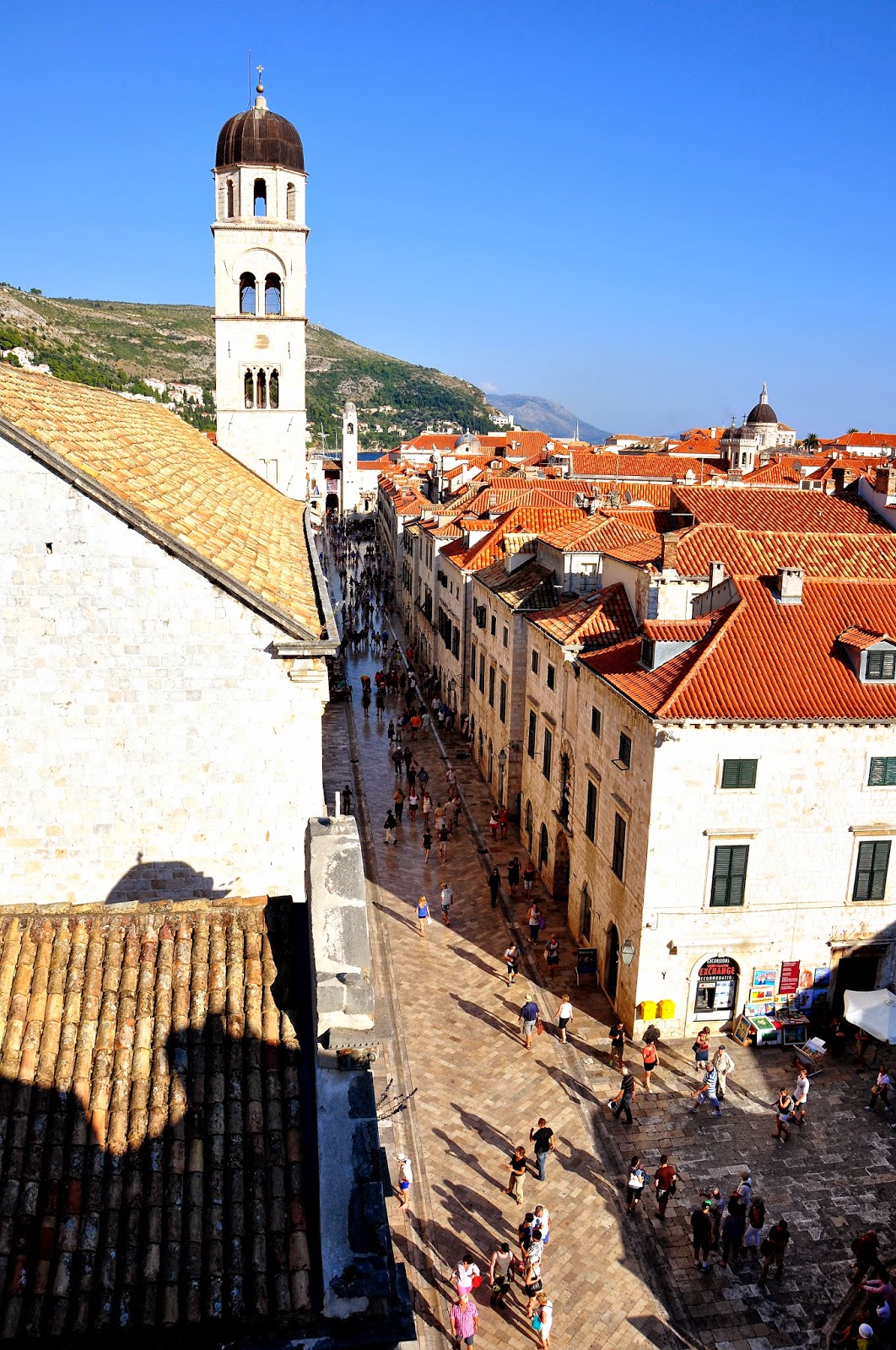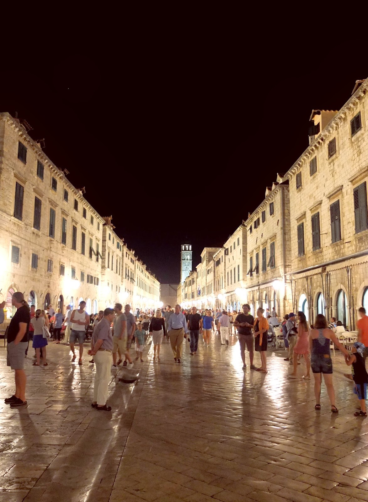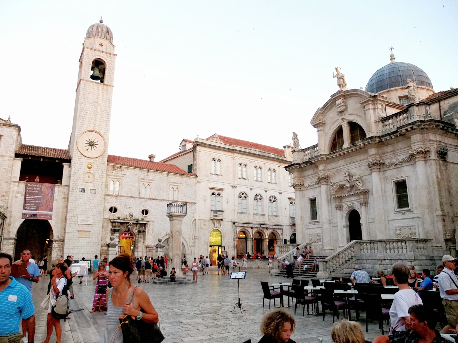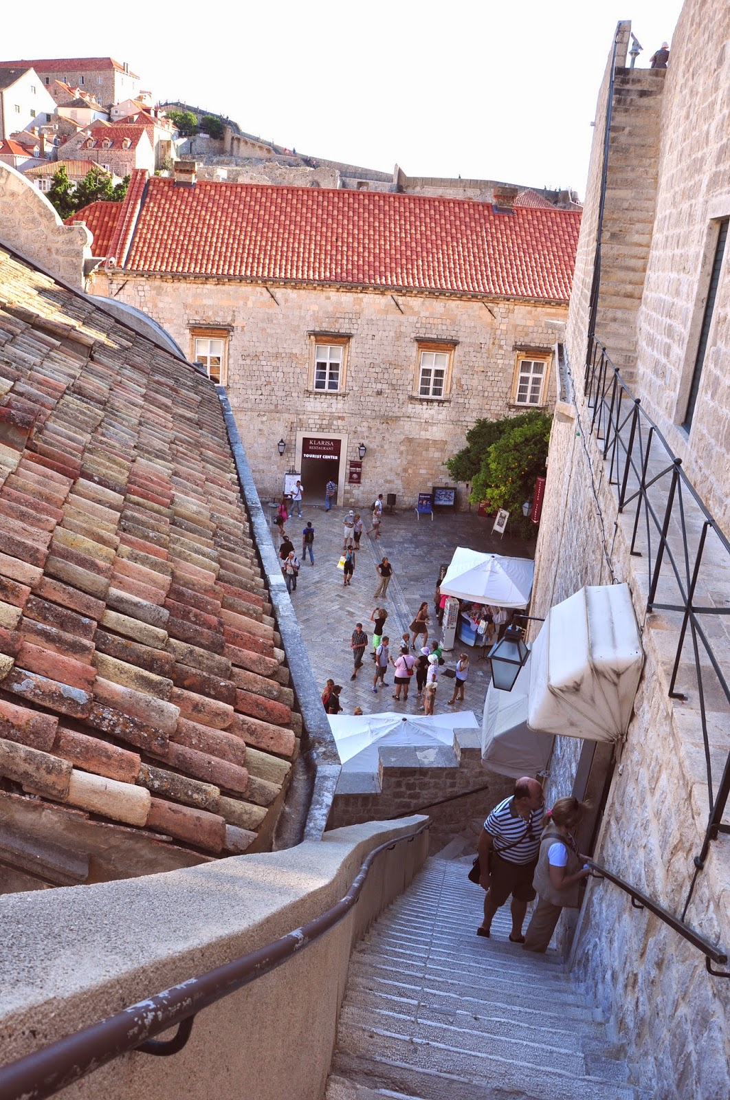 Dubrovnik 是個很美的小城,我一直覺得這個古城像是進擊的巨人裡的城市,有著完整的圍牆還有高高的鐘塔教堂,寬廣的市政廳廣場,也像是我在臉書城市建造的小遊戲裡,不經意就實踐起來的那種對中世紀城鎮的想像,甚至還更加完整;從入口處的護城河和吊門,然後還有玄關入口石磚坡道,讓人覺得好逼真啊!雖然她本來就是真的,但是因為一切都保存得太完整了,所以反而覺得好假,另一個原因也是因為這裡實在是太商業了,街道上所有的店舖都是餐廳和紀念品店,就像是迪士尼計畫好的一個主題遊樂區那樣,感覺不到一絲居民的氣息。總覺得走進每一個居民的家裡都可以找到他們在餐廳穿的制服... 但畢竟就是來度假的,也沒什麼好說的。只是這裡物價普遍高,大概因為來的都是有錢的老人,沒什麼其他休閒可以做,逛逛街之外就是吃大餐,我們也只好打臉充胖子,坐在街道上一起裝優雅了。