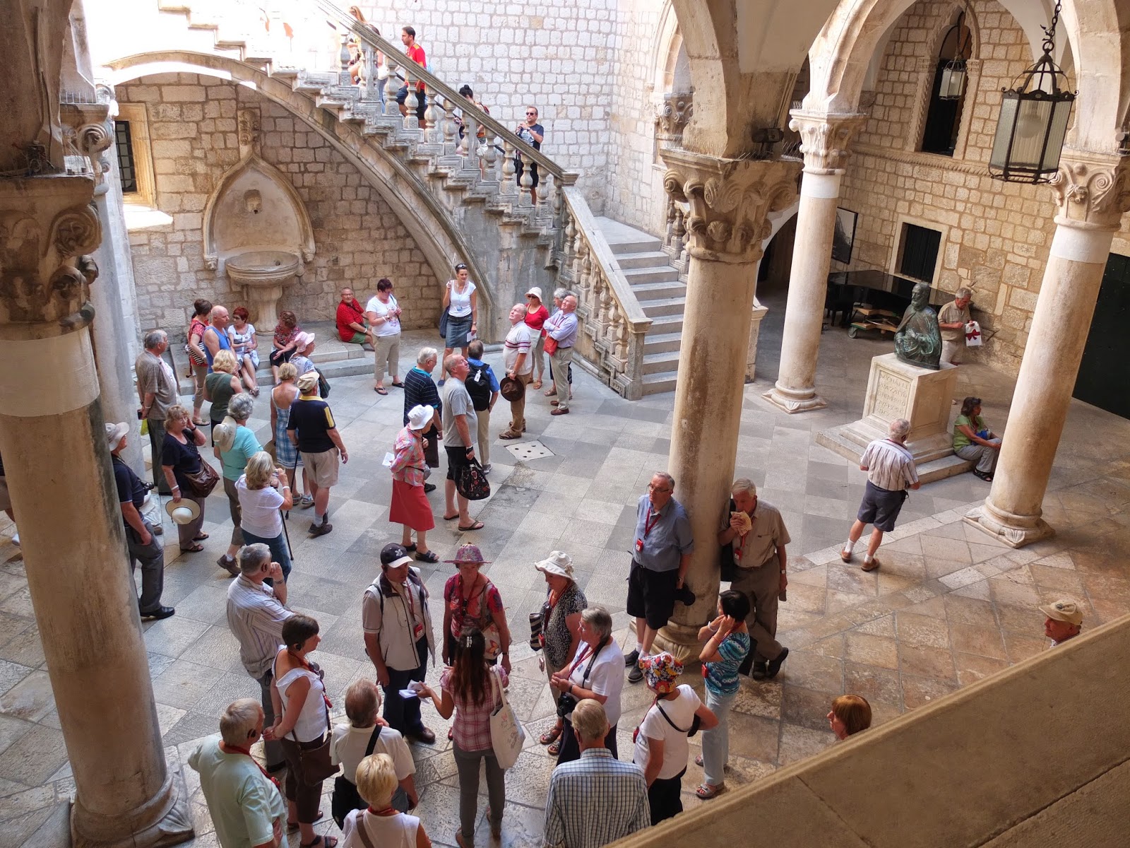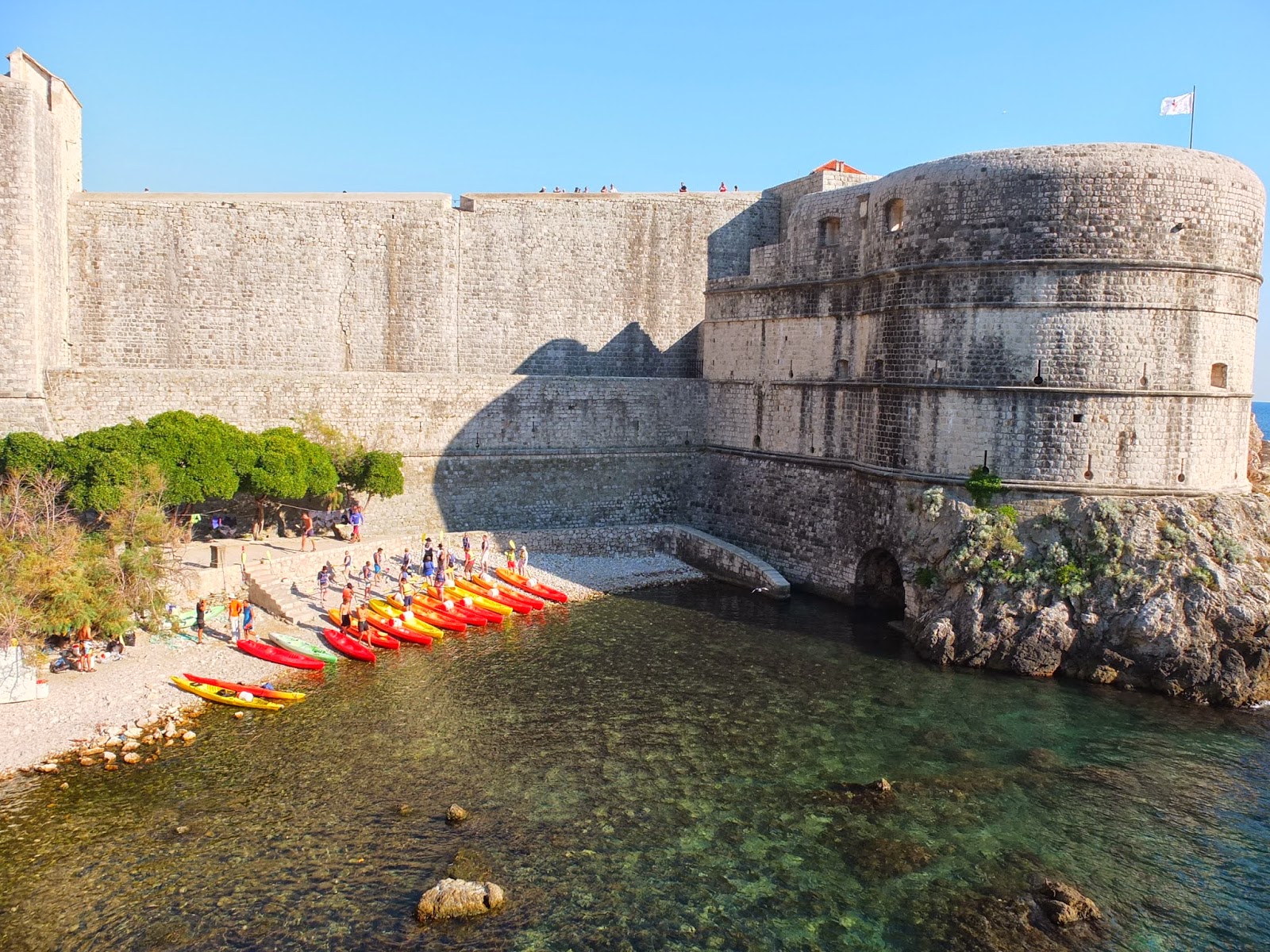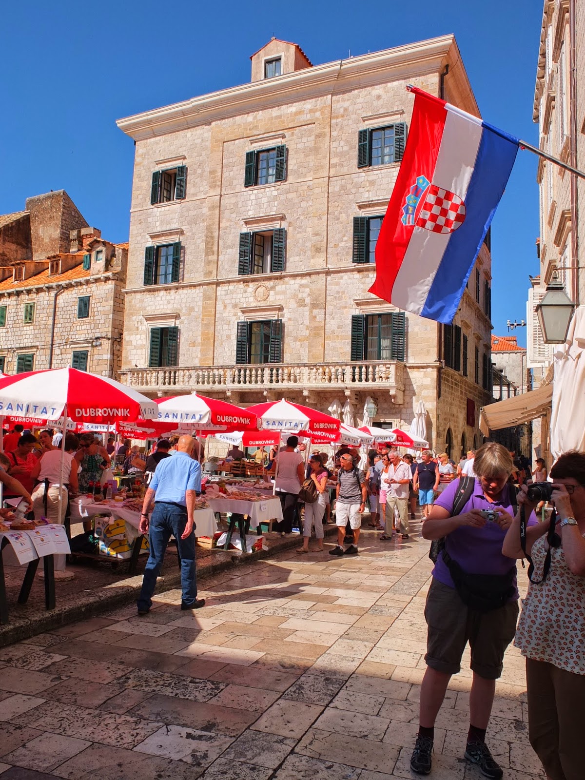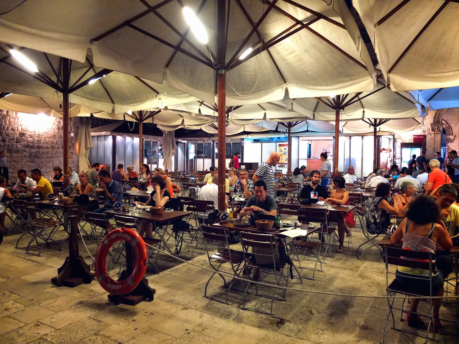 Dubrovnik 是個很美的小城,我一直覺得這個古城像是進擊的巨人裡的城市,有著完整的圍牆還有高高的鐘塔教堂,寬廣的市政廳廣場,也像是我在臉書城市建造的小遊戲裡,不經意就實踐起來的那種對中世紀城鎮的想像,甚至還更加完整;從入口處的護城河和吊門,然後還有玄關入口石磚坡道,讓人覺得好逼真啊!雖然她本來就是真的,但是因為一切都保存得太完整了,所以反而覺得好假,另一個原因也是因為這裡實在是太商業了,街道上所有的店舖都是餐廳和紀念品店,就像是迪士尼計畫好的一個主題遊樂區那樣,感覺不到一絲居民的氣息。總覺得走進每一個居民的家裡都可以找到他們在餐廳穿的制服... 但畢竟就是來度假的,也沒什麼好說的。只是這裡物價普遍高,大概因為來的都是有錢的老人,沒什麼其他休閒可以做,逛逛街之外就是吃大餐,我們也只好打臉充胖子,坐在街道上一起裝優雅了。