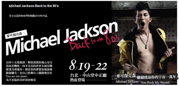 《麥可傑克森》絕對是令大多數觀眾感到驚喜、暢笑鼓動的一齣(類)歌舞劇場。將MJ的經典歌舞融進記憶的敘述中,無論高矮胖瘦都戴上帽子、黑色西裝、七分褲與白色襪子,MJ分身一同唱跳在舞台上;不必擔心你對MJ的喜好程度,但歌聲一下、舞台效果爆破一炸,MJ對氣氛的宣染總是比自己預料得還要來得強烈!